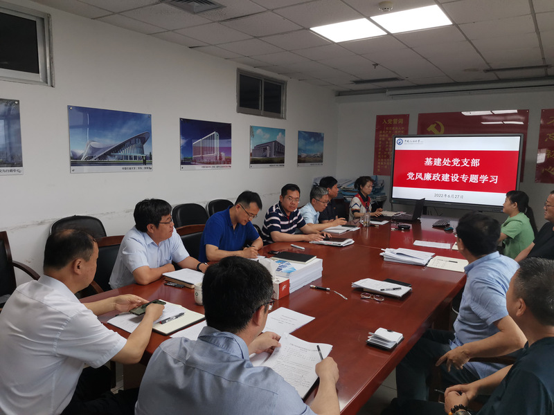 支部书记王迅对党风廉政工作提出三点要求,一是要努力构建以法纪教育为核心、案例教育为警示、廉洁文化为引领的“经常化、多样化、立体化”党风廉洁教育工作体系,提高廉政建设的针对性、实效性;二是要强化廉洁自律意识,筑牢思想防线,始终做到坚守“底线”、不越“红线”、不碰“高压线”,树立风清气正、廉洁奉公、干净做人、踏实做事的良好基建风气;三是要提升业务能力水平,用精湛的业务能力为廉洁自律和廉政风险防范保驾护航,为推进新一轮“双一流”建设、实施“十四五”规划提供坚实的基建保障。